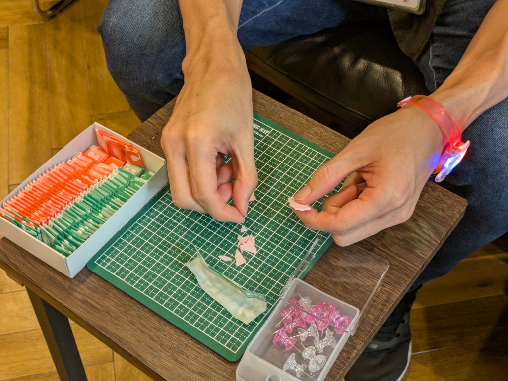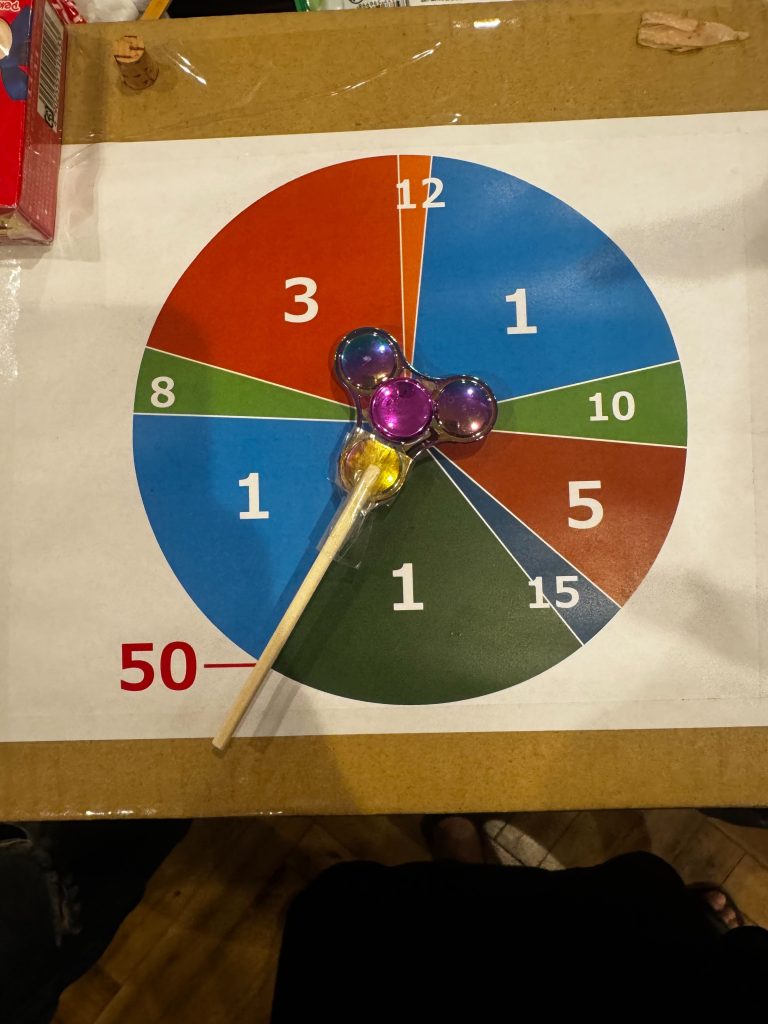 ソースせんべいのルーレットは、ハンドスピナーでDIYしたものを用意。当たるはずなく設計したのになんと50枚を当てたツワモノも登場!