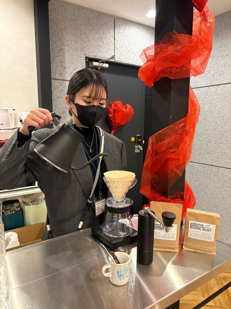 ドリンクはハンドドリップコーヒー、紅茶、ノンアルコールを中心に、フードはスイーツとブラウン系お惣菜をラインアップ。会話を楽しみながら、好きなスイーツ談義や組み合わせのペアリング体験で自然に交流が生まれ、いつもとは少し違った雰囲気で懇親会が開催されました。